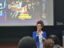 No mês de agosto de 2023, estudantes matriculados no Curso de Licenciatura em Artes Visuais da UFPel organizaram o evento 'Agosto Negro - Arte, Educação e Informação', como parte do conteúdo da disciplina 'Arte e Cultura Afro-brasileira'. Sob a supervisão da professora Rosemar Lemos, o evento englobou uma programação completa de palestras e apresentações que abordaram temas relevantes, ressaltando a importância da cultura afro-brasileira e sua interligação com o universo tecnológico. No dia 15 desse mês teve a palestra com o nome “A Resistência Negra e as Organizações Associativas”. Os convidados para o dia contribuíram para o tema com pautas importantíssimas, como o racismo estrutural, o machismo e pensamentos colonialistas, como influenciam na cultura brasileira e como amenizar tais comportamentos populares. O museólogo Matheus Cruz e a publicitária Fernanda Fersula . Entre vitrines, documentos e histórias silenciadas, Matheus Cruz construiu uma trajetória dedicada à preservação da memória e à valorização do patrimônio cultural. Doutor em Sociologia pela Universidade Federal do Rio Grande do Sul (UFRGS), mestre em Memória Social e Patrimônio Cultural e graduado em Museologia pela Universidade Federal de Pelotas (UFPel), Matheus não apenas estuda o passado — ele o torna acessível, vivo e relevante. Desde 2012, atua como museólogo no Museu do Doce da UFPel, onde transforma o cotidiano em narrativa e o açúcar em símbolo de identidade. Seu trabalho vai além das paredes do museu: como coordenador de Arte, Cultura e Patrimônio da universidade e representante dos museólogos na Rede de Museus da UFPel, Matheus articula ações que conectam extensão universitária, cultura digital e patrimônio imaterial. Sua pesquisa e atuação exploram as relações entre museus, memória e sociedade, com especial interesse por temas como identidade, museus universitários e práticas de resistência cultural. Seu currículo é marcado por projetos que cruzam fronteiras entre academia e comunidade, entre técnica e afeto. Dr. Matheus Cruz é, acima de tudo, um mediador entre tempos — alguém que escuta o passado para iluminar o presente e inspirar o futuro. Já Fernanda Férsula, em meio aos batuques do carnaval e às reuniões de branding, construiu uma trajetória que une arte, comunicação e resistência. Técnica em design e publicitária por formação, ela não se contentou com os limites da publicidade tradicional. Com uma pós-graduação em marketing e inovações na comunicação, Fernanda mergulhou fundo na criação de estratégias que não apenas vendem, mas também contam histórias — especialmente aquelas que celebram a cultura negra e popular. No estúdio Sigales, ela atua como estrategista de marcas, onde sua sensibilidade estética e visão crítica se encontram para dar vida a projetos que dialogam com o mundo real. Mas é no carnaval que Fernanda revela outra faceta: a de carnavalesca e rainha de bateria. Com brilho nos olhos e firmeza nos passos, ela transforma a avenida em palco de memória, identidade e afeto. Mãe do Murilo, Fernanda equilibra maternidade com uma carreira intensa e engajada. Participa de podcasts, eventos acadêmicos e rodas de conversa, como o Papofolk da UFPel, onde compartilha reflexões sobre comunidade, cultura e resistência em tempos de crise. Fernanda Fersula é, acima de tudo, uma ponte — entre o tambor e o discurso, entre o afeto e a estratégia, entre o passado que pulsa e o futuro que ela ajuda a desenhar.