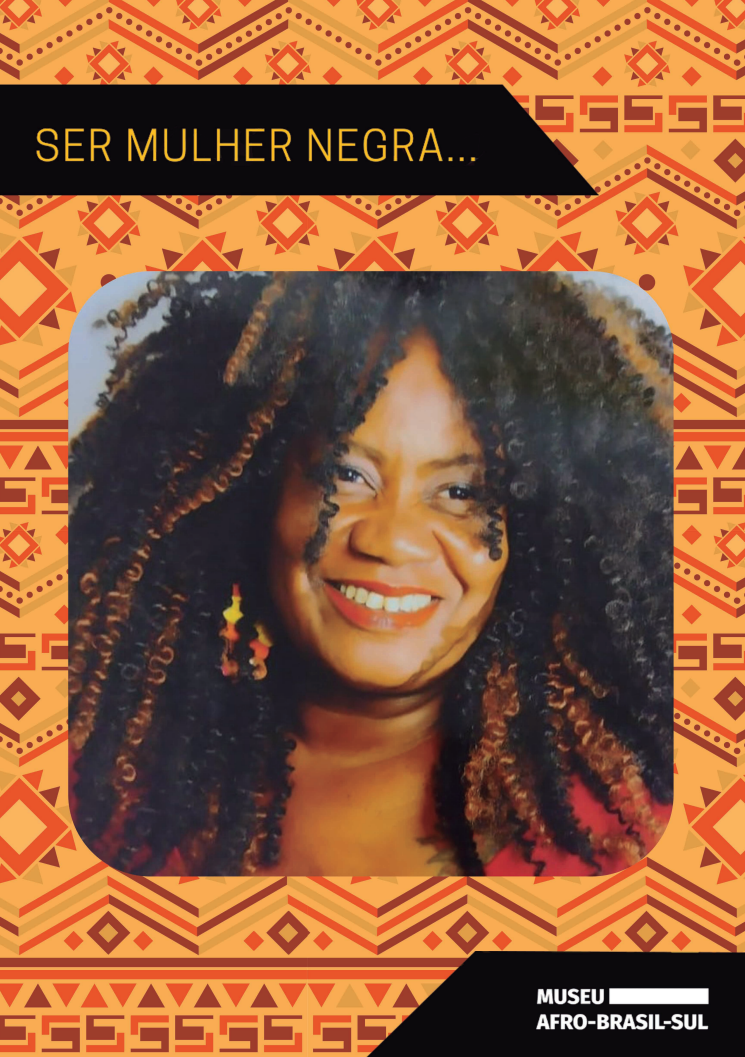“SER MULHER NEGRA, hoje, mais do que nunca para mim é ter ciência do que é resistência e resiliência. É ter certeza que os argumentos de superação, não são meus e sim de minha ancestralidade que me amparam e me dão força para seguir lutando. Aprendo que ser mulher negra é ter amigas e amigos que me colocam de pé porque não me abandonam. É sentir está força e está energia de quem não solta a minha mão e mesmo com está distância estabelecida pelo momento atual (covid) não deixam eu me sentir sozinha”.