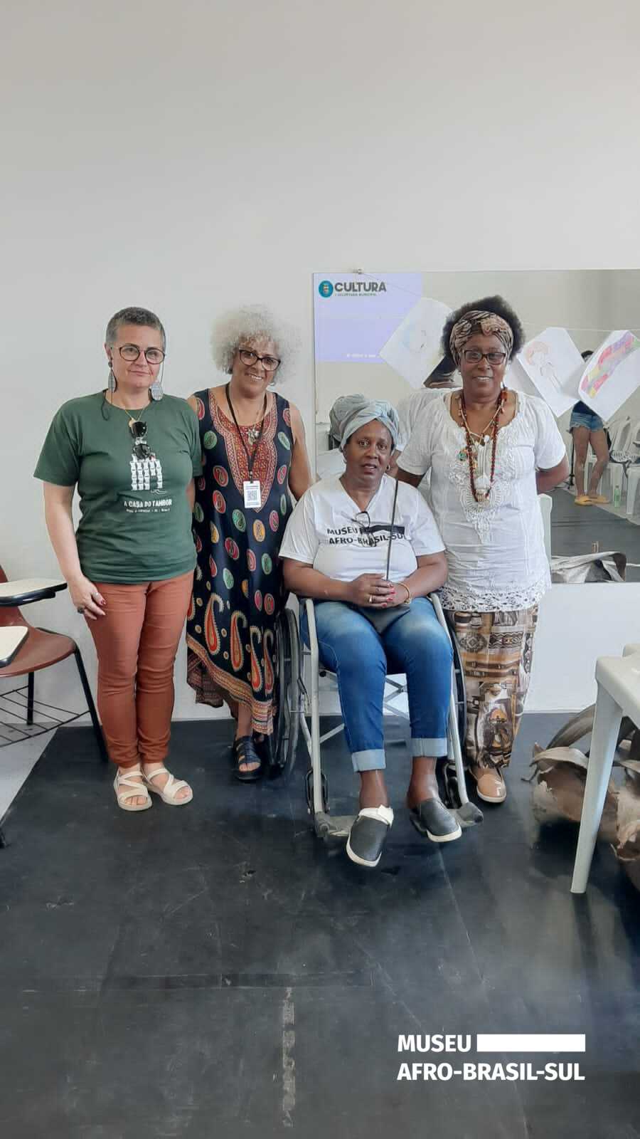 Início > Coleções > MABSul > Professora Maristela Machado Corrêa, Jocelem Mariza Soares Fernandes, Secretária Municipal da Cultura de Arroio Grande Anelize Carriconde e a Babalorixá Mãe Preta de Ogum na Oficina Arte, Educação e “Africanidades”