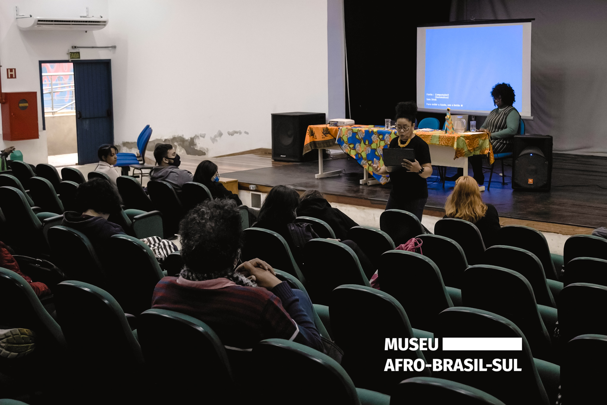 • Professora Maritza em meio a apresentação da aula aberta – Palestra ODARA
